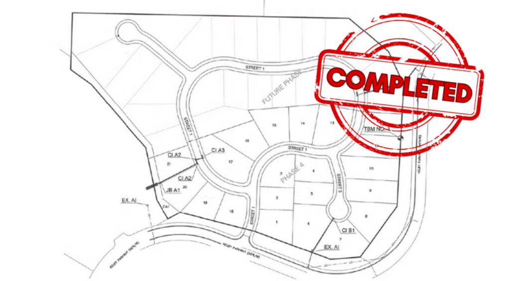 This subdivision will be split into a Phase 4A and a Phase 4B. 4A will feature 21 buildable lots in the Kelby Creek Subdivision. All public improvements necessary for the building of homes in Phase 4A are completed.