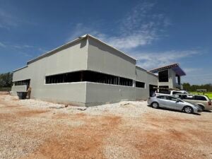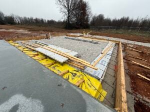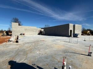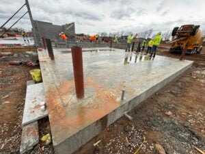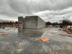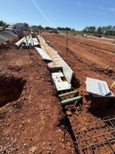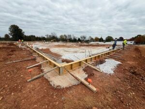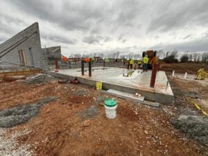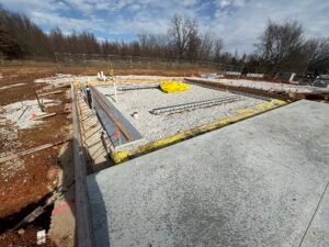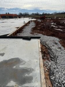 KCI is working on the underground plumbing and electrical. The building foundation installation is complete and the slab form work is underway.