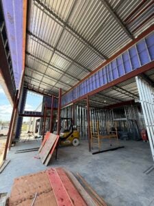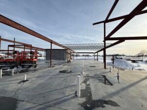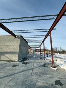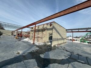 KCI has been working on the structural steel and is scheduled to continue once the last load of joists/decking is received.