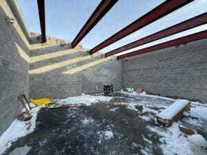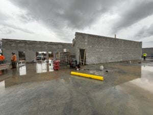 KCI is working on the building perimeter foundation drain installation. The masonry is ongoing around the future classroom area with subs penetrating the block as needed for Mechanical/Electrical/Plumbing (MEP) items.
