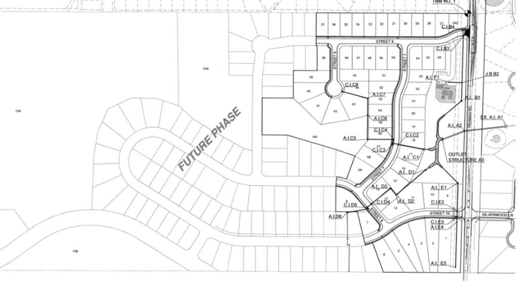 This subdivision consists of multiple phases. Phase 1 is the current phase under construction and will consist of 59 single family lots